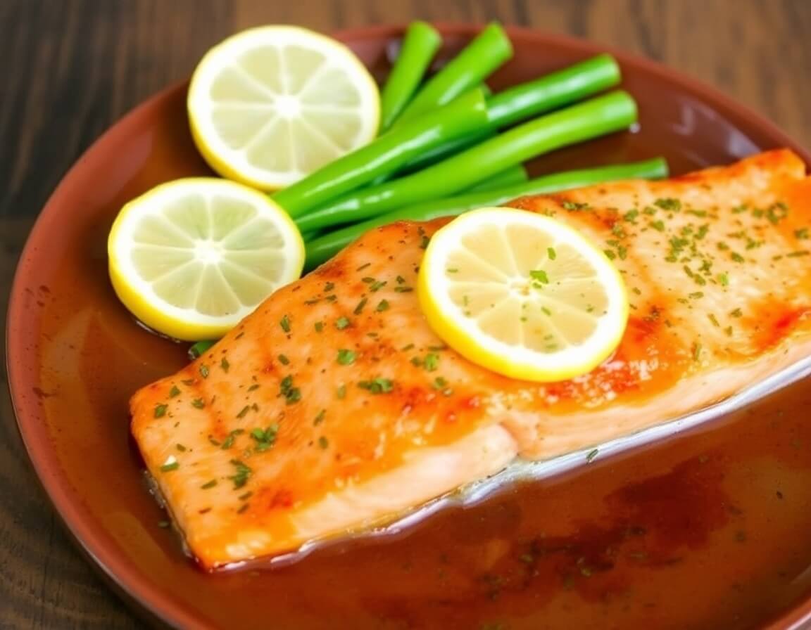 Imagine tender salmon fillets, baked to flaky perfection, infused with the zesty tang of fresh lemon and the bold, savory flavor of garlic. Every bite is a harmony of freshness and warmth, complemented by a hint of herbs. It’s like a gourmet meal, but without the stress of complicated cooking.