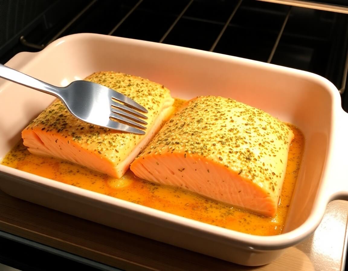 Place the dish in the oven and bake for 12-15 minutes, depending on the thickness of your fillets. You’ll know it’s done when the salmon flakes easily with a fork.