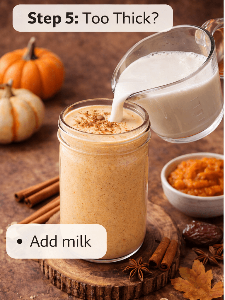 Here’s where you become a smoothie artist. Taste your creation. Need it sweeter? Add more maple syrup. Want more spice? Sprinkle in extra pumpkin pie spice. Too thick? Add a splash of milk. Too thin? Throw in more ice or frozen banana.